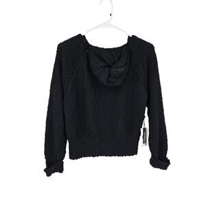 Callahan Hoodie Sweater Black Boucle Knit Square Neck Pullover Crop NWT Size S
