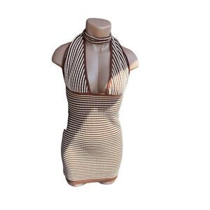 Meet the Mimi Mini, the newest member to join the Mimi family. With the same sultry crossover halter and fitted silhouette, we gave this one an update with a shorter length and stripe design. 30% acrylic, 28% polyester, 22% nylon, 20% viscose • Made in China • Hand wash • Unlined • Pull-on styling • Crisscross halterneck with cut-out detail • Knit fabric • Revolve Style No. CAHN-WD63 • Manufacturer Style No. 42212
