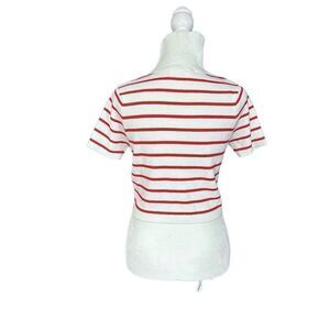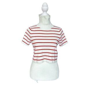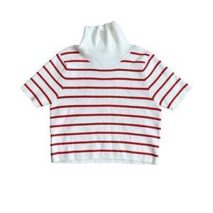 Callahan Lucy Red & White Stripe Turtleneck Short Sleeve Cropped Sweater Size XS
