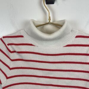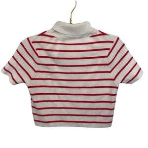 Callahan Revolve White Red Striped Short Sleeve Turtleneck Cropped Sweater Sz S