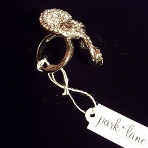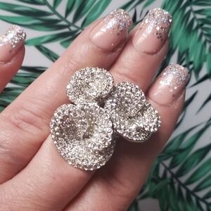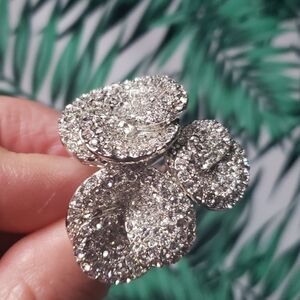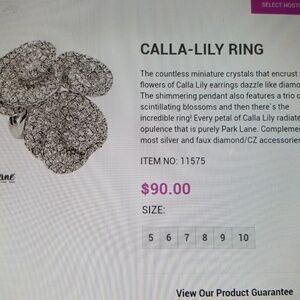 The countless miniature crystals that encrust the flowers of calla lily silver/faux diamond CZ ring.