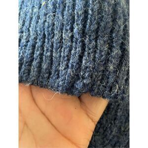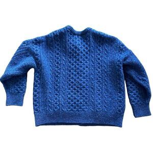 Callan Ireland Cardigan L Blue Marled Fisherman Leather Button 100% Wool Grandpa