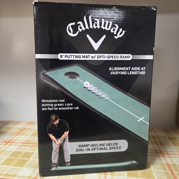 Perfect your skills from home or the office with the Callaway 8ft Putting Mat. The 8ft x 1ft putting surface simulates the real green. Includes premium backing to minimize folds and creases for a smoother roll. With its ramp incline designed to dial-in optimal speed, you're sure to get the most out of practice without leaving home.