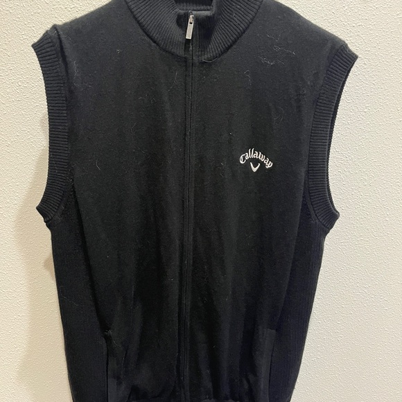 Sleek black sweatervest by Callaway. Features optimal performance design. #golfvest