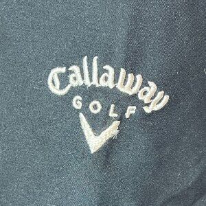 This Callaway Golf pullover jacket offers a professional look with its sleek black design. Made from durable microfiber, it provides comfort and functionality.