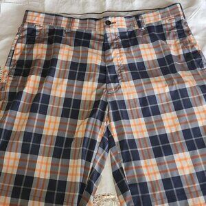 Callaway Golf Embroidered Logo Plaid Flat Front Athletic Sz 36 Shorts w Pockets