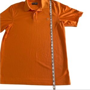 Callaway Golf Opti Dri Quick Dry Orange Short Sleeve Jersey Knit Polo Shirt Men’s Size Medium. This shirt is preowned and in very good condition.