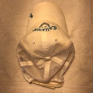 H4 Hat/Cap Callaway Golf Vietnam Women Adjustable Hook & Loop Strap Callaway Golf type and logo in green with sequins on logo and logo on sidebill / all white trucker hat
