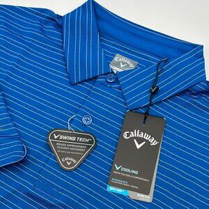 Callaway Men's Fine Line Ventilated Stripe Golf Polo Shirt, Size Large, Blue