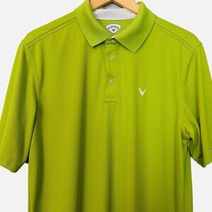 Callaway Men's Golf Short Sleeve Lime Green 2 Button Collared Shirt Large. 100% Polyester