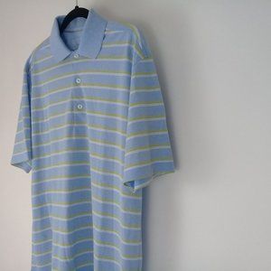 Callaway Men's Striped Golf Sky Blue Polo Shirt Collared Neck Short Sleeve Large