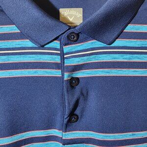 Callaway Opti Dri Blue Striped Short Sleeve Polo Shirt Golf SZ L