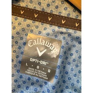 Callaway Opti Dri Size Large Men’s Golf Polo NWOT Blue Print Stretchy Short Slee