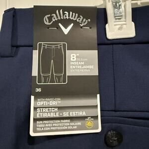 Callaway Opti-Dri Golf Shorts Mens Size 36 x 8" Navy Blue Stretch UPF 50 NWT