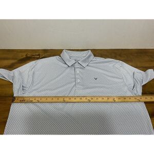 The button closure adds a classic touch to this outdoor sports shirt, which is suitable for golfers of all levels. The shirt is available in XL size and is machine washable. Make a statement on the golf course with this Callaway Opti-Dri polo shirt, designed to keep you comfortable and stylish during your game.pre owned good condition we ship fast measurements are In the pictures