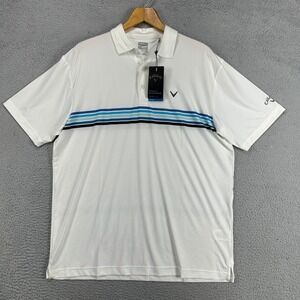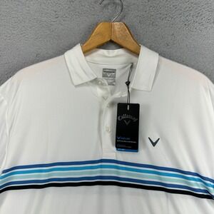 Callaway Opti-Dri Men Golf Polo Shirt Large White Blue Stripes Stretch Rugby NEW