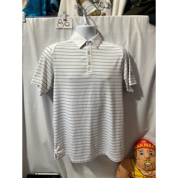Callaway Opti-Dri Mens S Shirt Short Sleeve White Striped Athletic Polo Golf