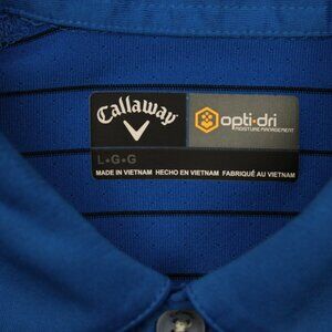 Callaway Opti-Dri Polo Shirt Mens Large Blue/Black Striped Polyester S/S Golf