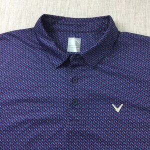 Callaway Polo Shirt Mens 2XL Navy Golf Performance Short Sleeve Slit Pullover.