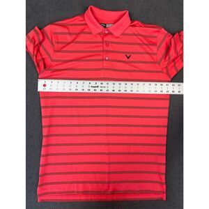 Callaway performance golf polo shirt featuring Opti Dri moisture wicking fabric and a classic striped pattern. Lightweight, breathable, and perfect for golf, tennis, or casual wear. Short sleeve style with a comfortable athletic fit. Excellent preowned condition. Please see photos for measurements.
