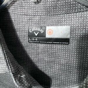 Callaway Polo Shirt Men's Sz Large Grey Geometric Like Golf Performance Opti Dri LIKE NEW! Short sleeve, no rips, no stains. Chest 50”. Shirt length 30”.
