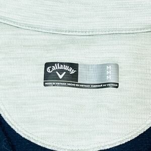 Introducing a Callaway Men's Pullover Sweater in medium, featuring a navy blue color and 1/4 zip design. This used sweater is embroidered with the Callaway logo and is perfect for golf or casual wear.