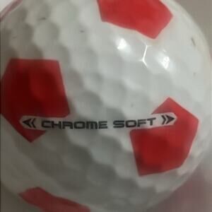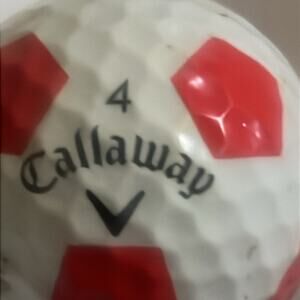 Callaway golf ball with a striking red and white design. Ideal for golf lovers.