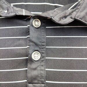 This Callaway polo shirt offers a sophisticated style with its classic black and gray striped design. Made from high-quality materials, it ensures comfort and durability. The shirt features a collared neckline and buttoned placket, providing a professional look suitable for various occasions.
