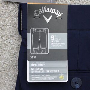 Callaway Shorts NWT Mens 33 Blue Opti-Dri Golf Stretch 9" inseam Flat Front