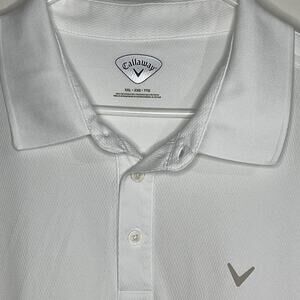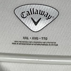 Clean and classic white Callaway golf polo in size XXL, crafted from lightweight, breathable performance fabric. Features a three-button placket and a relaxed fit, perfect for golf, casual wear, or active days.