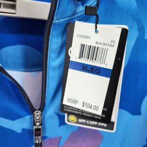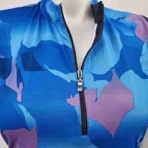 This Callaway golf dress is designed for the active golfer, featuring moisture-wicking technology and UPF 50 protection. Its sleeveless design allows for unrestricted movement, and the vibrant blue sea star pattern adds a stylish touch to your athletic wardrobe. Ideal for sunny rounds on the course.