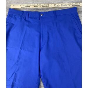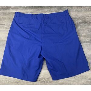 Featuring a flat front and belt loops, these shorts have a waist size of 38 inches and a mid-rise inseam of 10 inches. They also have convenient pockets, including slash pockets, to keep your essentials secure while you play. Machine washable and in excellent used condition, these shorts are a must-have for any golf enthusiast.
