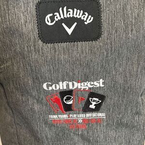 Nice Calloway gray canvas backpack. Sponsored by golf digest magazine drawstring top with bungee cord inside mesh zippered pocket lightweight great for travel.