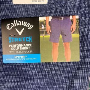Callaway Mens 410 Peacoat Stretch Performance Golf Shorts FF Printed Texture Short size 40 NEW with tags Blue Opti Dry MSRP $78