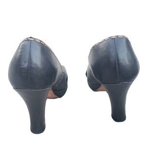 Calleen Cordero Platform Heels Black Leather Contrast Stitch Open Toe 8.5