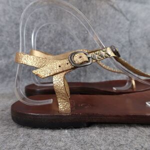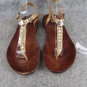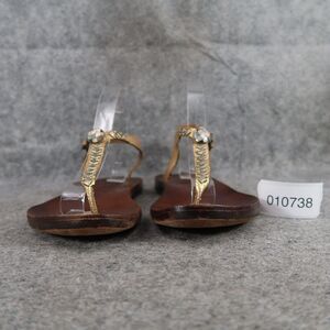 Used Calleen Cordero Shoes Womens 7 Sandals Emily Rolexa Leather Hand-Studded T Strap Gold Brown