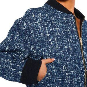 Callie Lives Miz Micro Denim Blue Pixel Weave Akira Bomber Jacket Coat SMALL