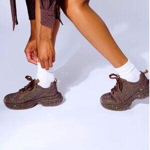 Grab your pair of Callie Lives Miz Spacecraft Extra-Terrestrial Irridescent Bling Brown Sneaker