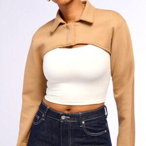 Callie Lives Miz Yuki Crop Bolero Working Tan Shacket Jacket L 1X