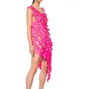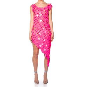 Callie Lives Stasia 3006 AKIRA Its A Hot Pink Party Sequin Chain Mini Dress Med