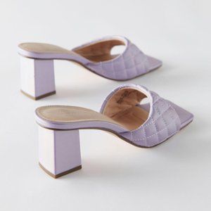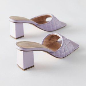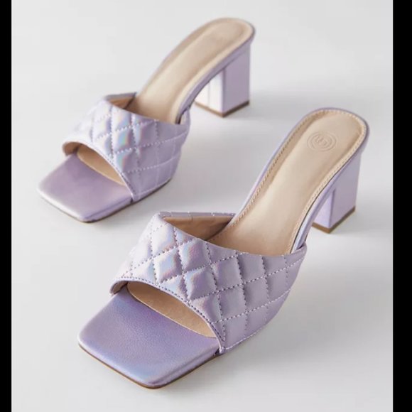 Easy open-toe mule sandal designed with a quilted strap for extra padding. Complete with a comfort footbed and covered block heel. Exclusively available at Urban Outfitters.