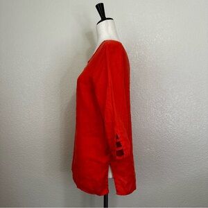 Calligraphie 100% Linen Orange Cut outs 3/4 Sleeves Tunic Top, Sz Small