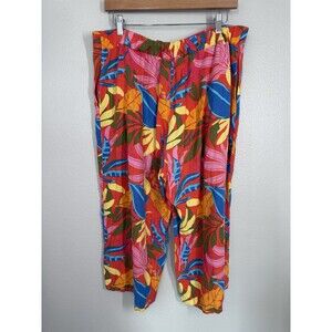 Calligraphie Anthropologie Bright Tropical Linen Blend Pants Size L Beach Vacay
