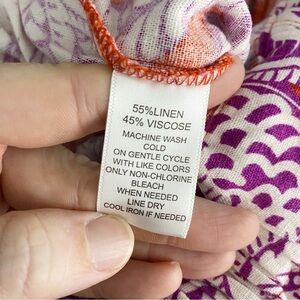 Calligraphie Anthropologie Linen Blend Button Front Top Medium Red Purple Floral
