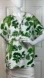 Stylish button-up shirt with a vibrant green leaf print. Features wooden buttons for a natural touch blouse in good condition
