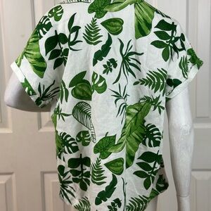 Calligraphie Anthropologie Tropical Linen short Sleeve Top Size XL. E87