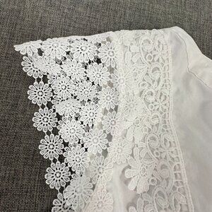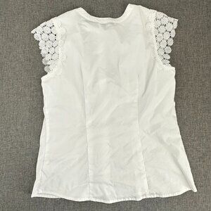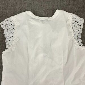 Calligraphie Button Down Top White Floral Embroidered detail Cap Sleeve Medium