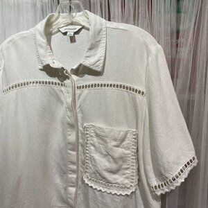Calligraphie Linen Blend Boxy Button Down Shirt Size Large White Beachy
