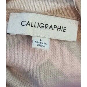 Calligraphie Long Cardigan Open Front Abstract Pink Gray Brown Size Large