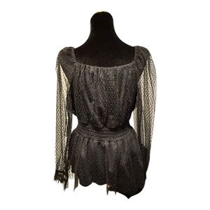 Calligraphie Mesh Swiss Dot Blouse L Black Lined Peplum Sheer Sleeves V-Neck EUC